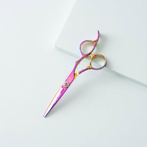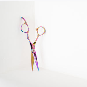 The Sayuri S8 "Pink Passion" shear is a stylish choice for precision cutting. A stunning blend of pink, orange and purple with a jeweled accent - this will certainly be noticed by your co-workers. Smooth, exact cuts every time. Available in 5.5" length.
